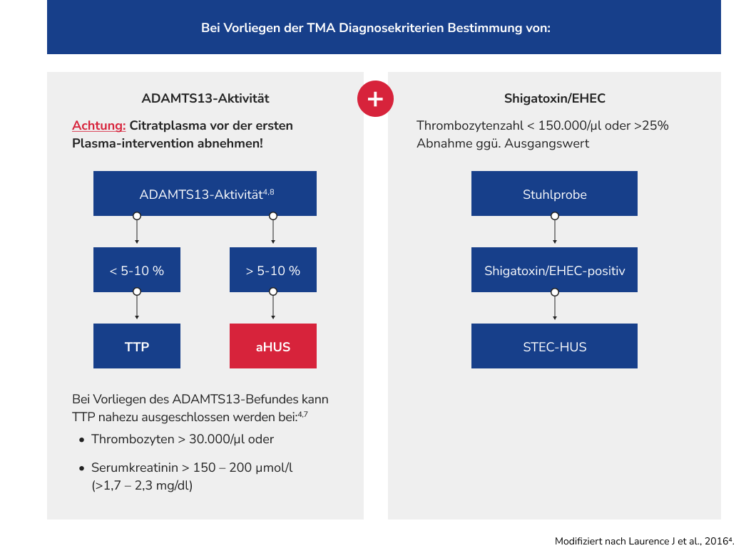 Die Diagnose des aHUS ist eine Ausschlussdiagnose, bei der andere mögliche Ursachen für TMA ausgeschlossen werden müssen.ref_Wendt_R_2023