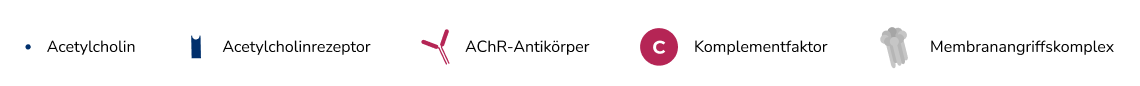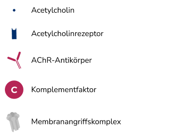 Bei der Mysthenia gravis kann das Krankheitsgeschehen in drei Mechanismen unterteilt werden, die gleichzeitig ablaufen können und alle die Nerv-Muskel-Kommunikation beeinträchtigen:ref_drachmann_1980